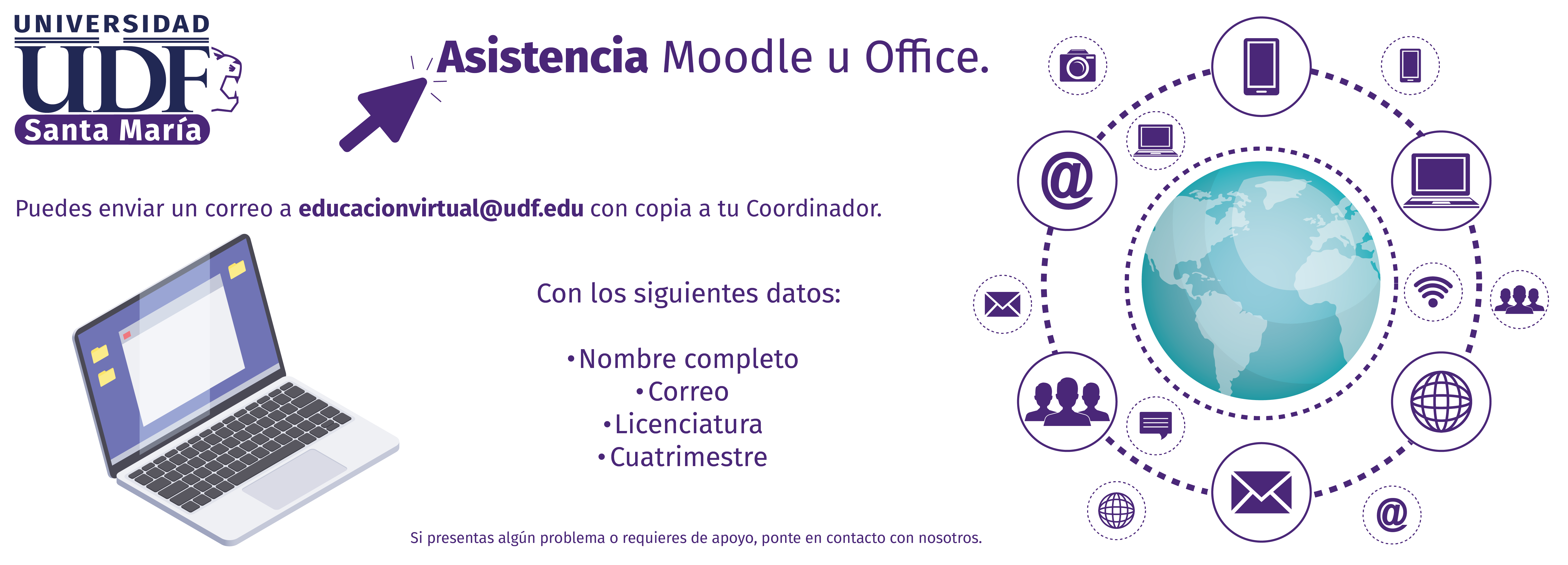 Asiste al centro de cómputo o a la coordinación académica de tu campus para que te puedan asistir, o bien, compartirte el calendario de capacitaciones programadas.
